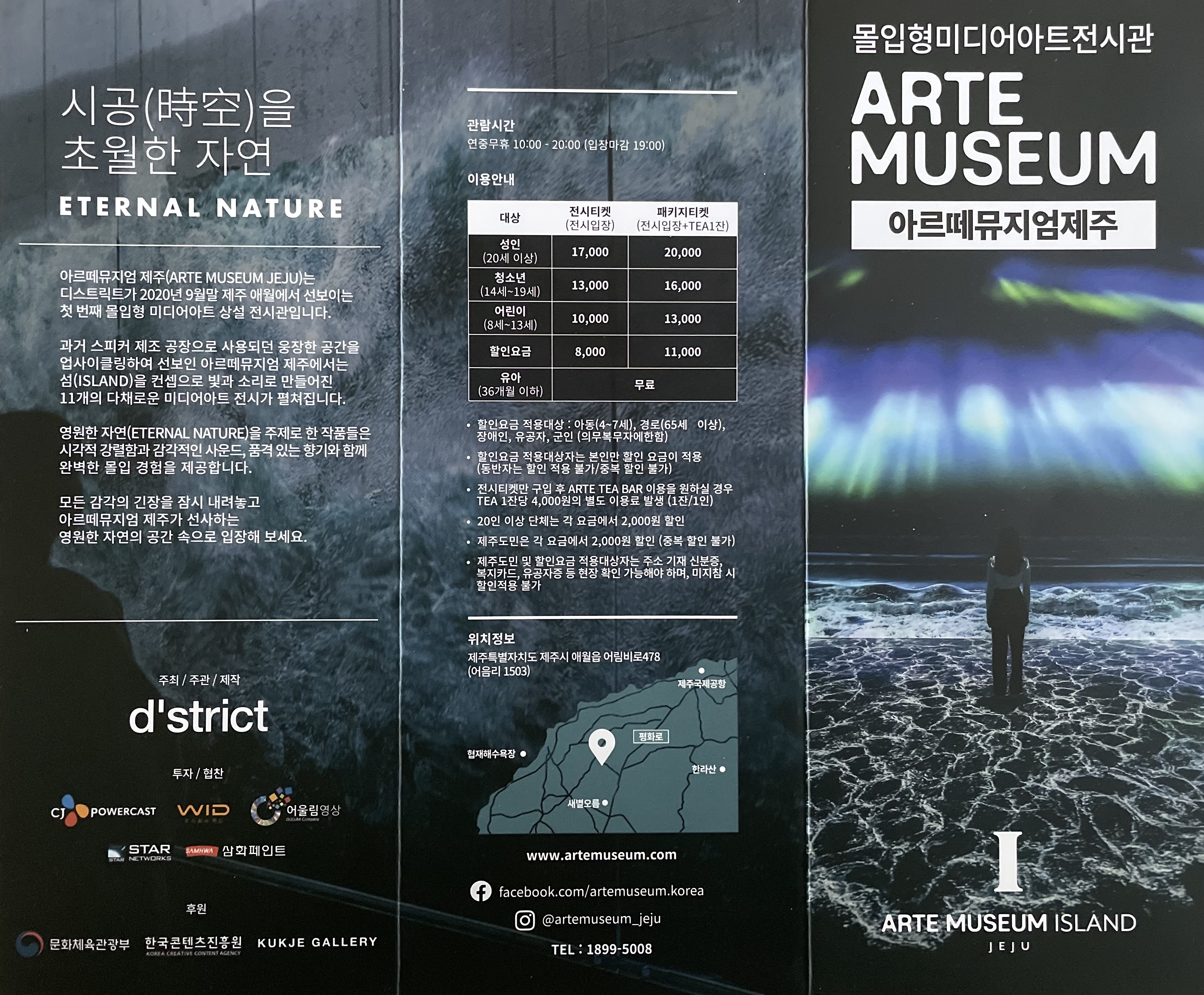 제주에서 비가 올 때 꼭 가야 하는 핫플중의 하나로 국내 최대 규모의 미디어아트 전시관입니다. 다양한 테마로 구성된 웅장한 스케일의 미디어아트 전시는 최고의 몰입도를 자랑하며 눈과 귀를 호강시켜줄 것입니다. 어린이부터 어른까지 즐길 수 있는 공간이며 핫플이라 사람이 많다는 점 그리고 볼거리가 많아 관람시간이 생각보다 많이 소요되니 여유 있는 스케줄로 즐기시기 바랍니다. 사진을 예쁘게 찍고 싶으시다면 하얀색 옷 추천합니다.