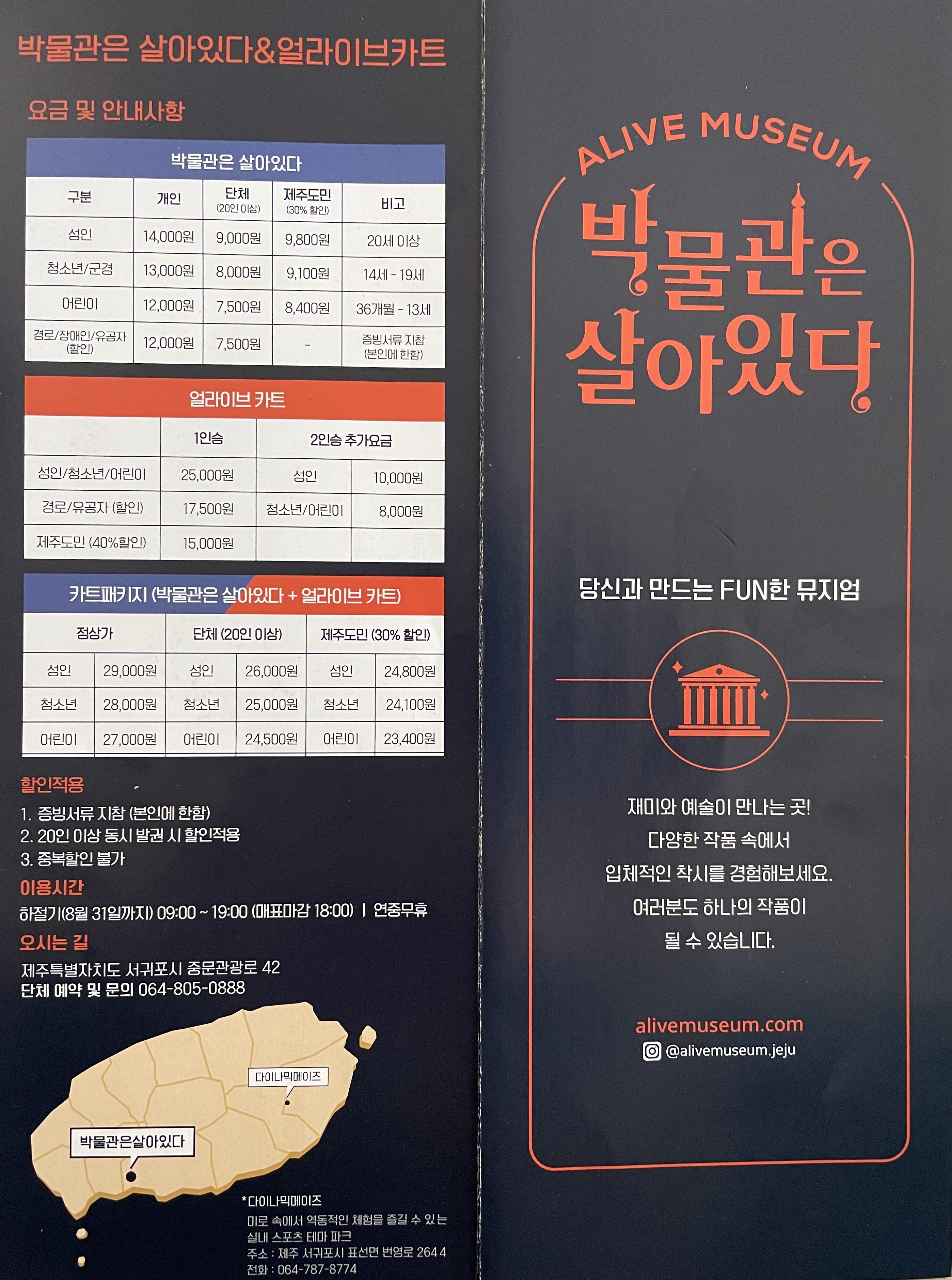 제주도의 자연을 보러 제주여행을 많이들 오시는데요, 제주만의 특징을 보유한 실내 관광지도 많습니다. 제주여행의 가장 큰 변수는 날씨가 아닐까 싶습니다. 큰맘 먹고 나섰던 여행이 날씨로 인해 차질이 생겼을 경우도 급히 실내 관광으로 일정을 변경해야 하는 경우가 생깁니다. 비가 오나 눈이 오나 아이들과 관광 가능한 제주도 실내 장소를 소개하겠습니다. 비 올 때 제주 실내 관광지에 관한 자세한 내용은 첨부된 팸플릿을 참고하세요.