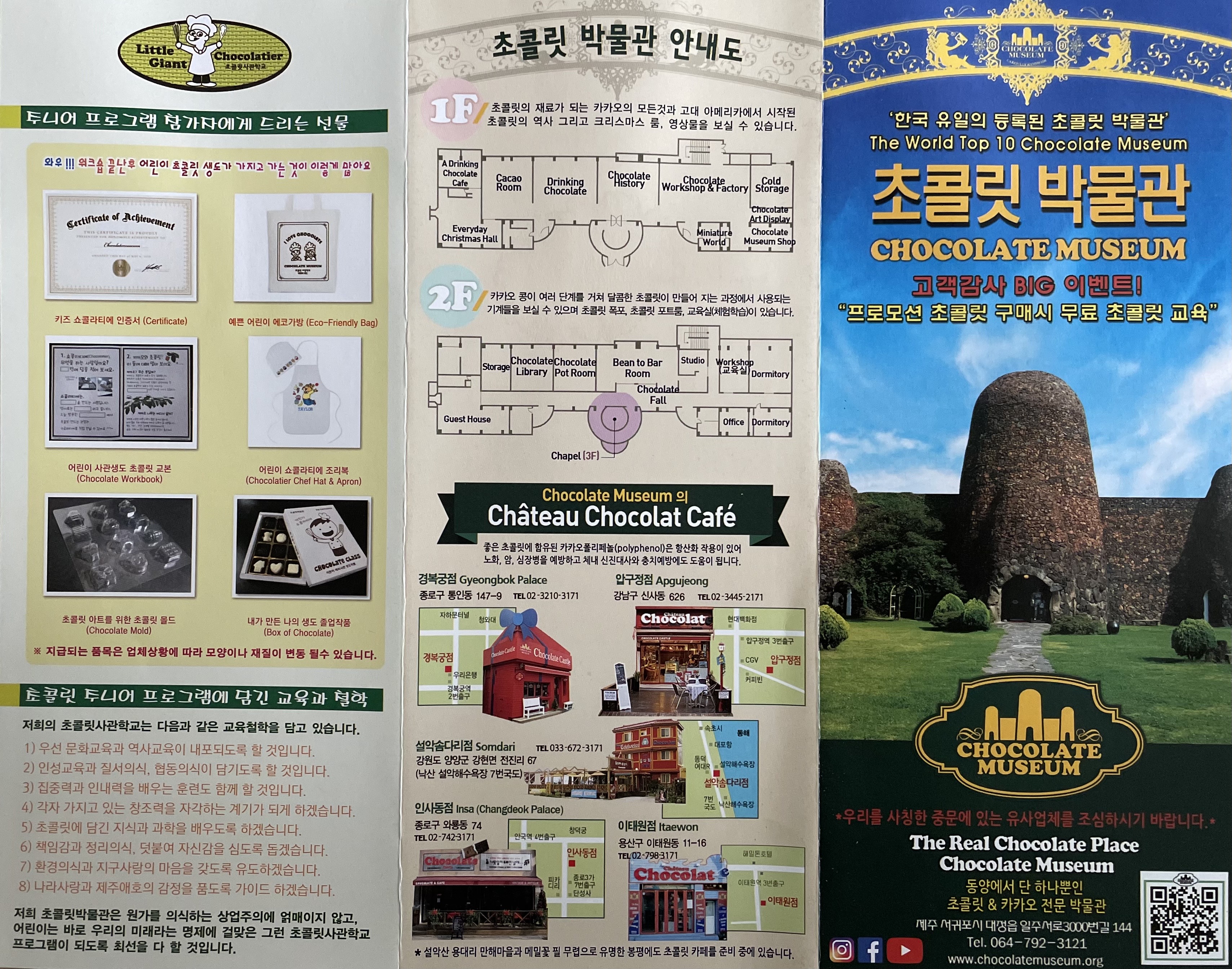 초콜릿 박물관에서 초콜릿 만들기 체험은 크리스마스가 다가오면서 즐겁게 해 볼 수 있는 체험 중의 하나인 것 같습니다. 서귀포에 위치한 초콜릿 박물관은 초콜릿의 역사와 만들어지는 과정을 알 수 있고 아이들의 눈과 입이 즐거워진답니다. 초콜릿 체험비용은 2만 5천 원인데 매장 내 초콜릿을 구매하면 체험권을 준다고 하니 참고하세요.