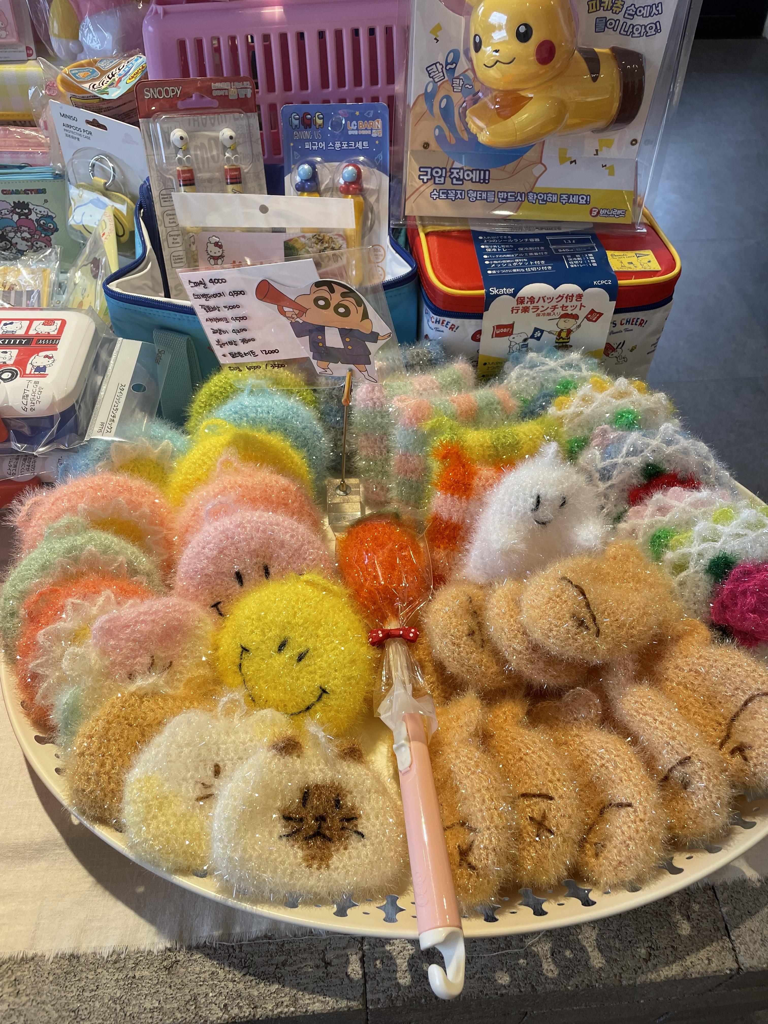 요새 많이 보이는 코바늘 수세미도 종류가 많았어요.