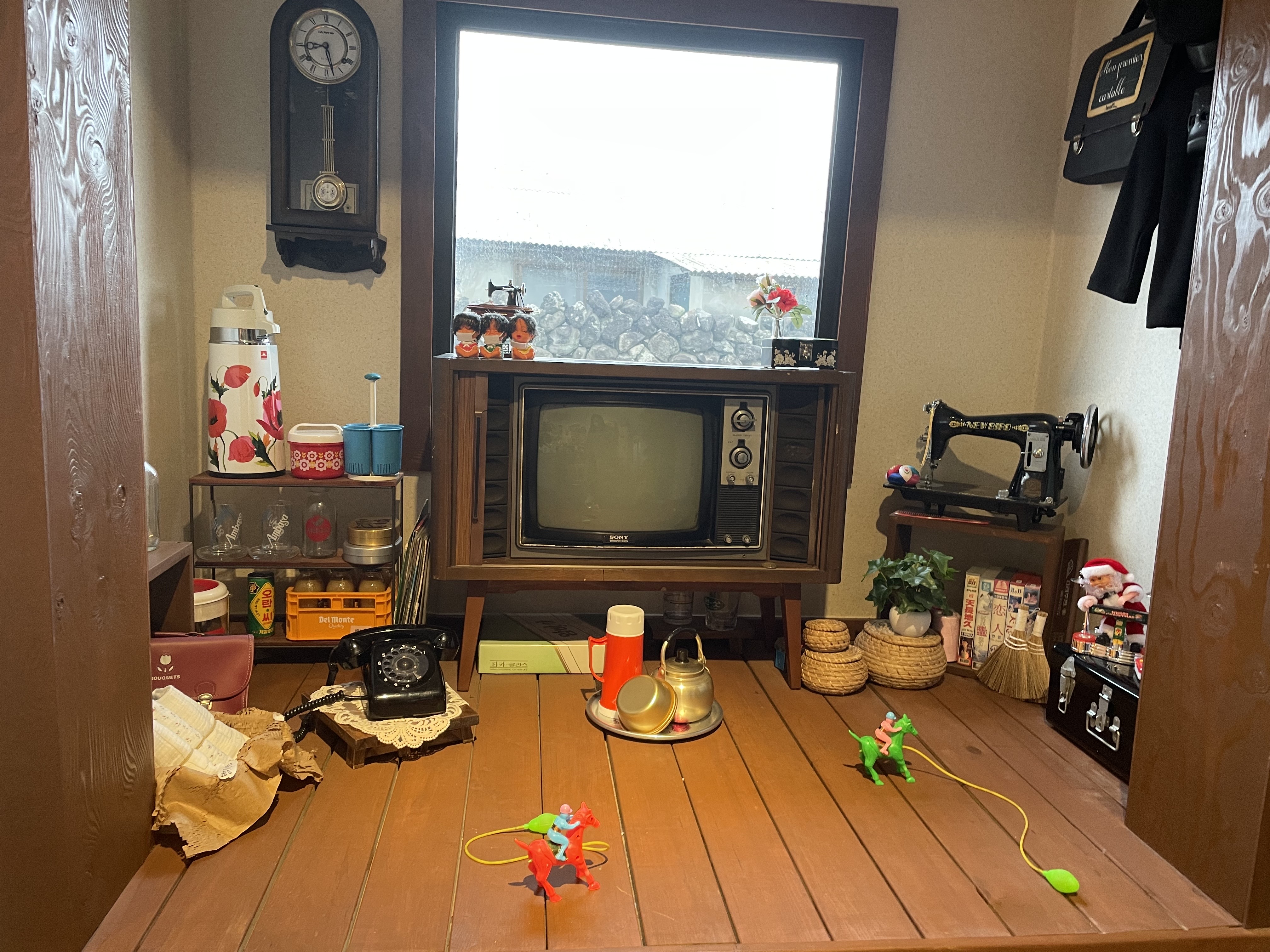 요렇게 80년대? 감성으로 꾸며진 공간도 있답니다. 아이들은 전화기와 TV가 신기한 모양입니다. 문득 창밖에 돌담마저 정겹게 느껴지네요.