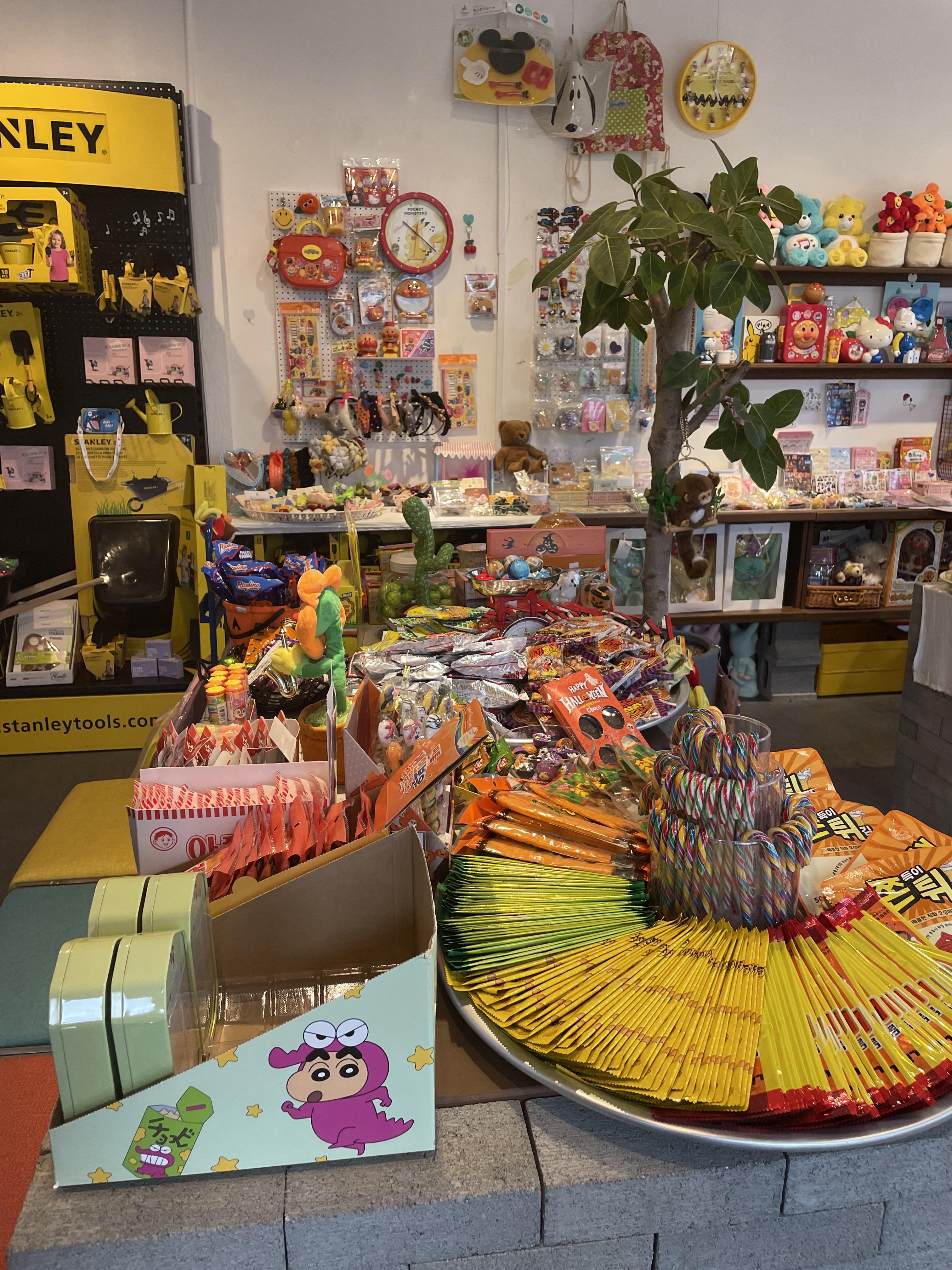 밖에서 봤을 땐 내부가 상상이 안 되었는데 들어서자마자 아이 눈이 휘둥그레집니다. 한쪽엔 학교 앞 문방구 감성의 아기자기한 문구들이 있어요. 아이의 눈이 제일먼저 향하는 곳입니다. 분명 다른 문구점에서도 본 것 같은 상품들도 있는 것 같은데 아이는 꼭 사야 한답니다. 신기하고 특별한 상품들이 훨씬 많기는 해서 잘 골라보라고 바구니를 쥐어줍니다. 이거 저거 스스로 고르는 재미도 쏠쏠하죠