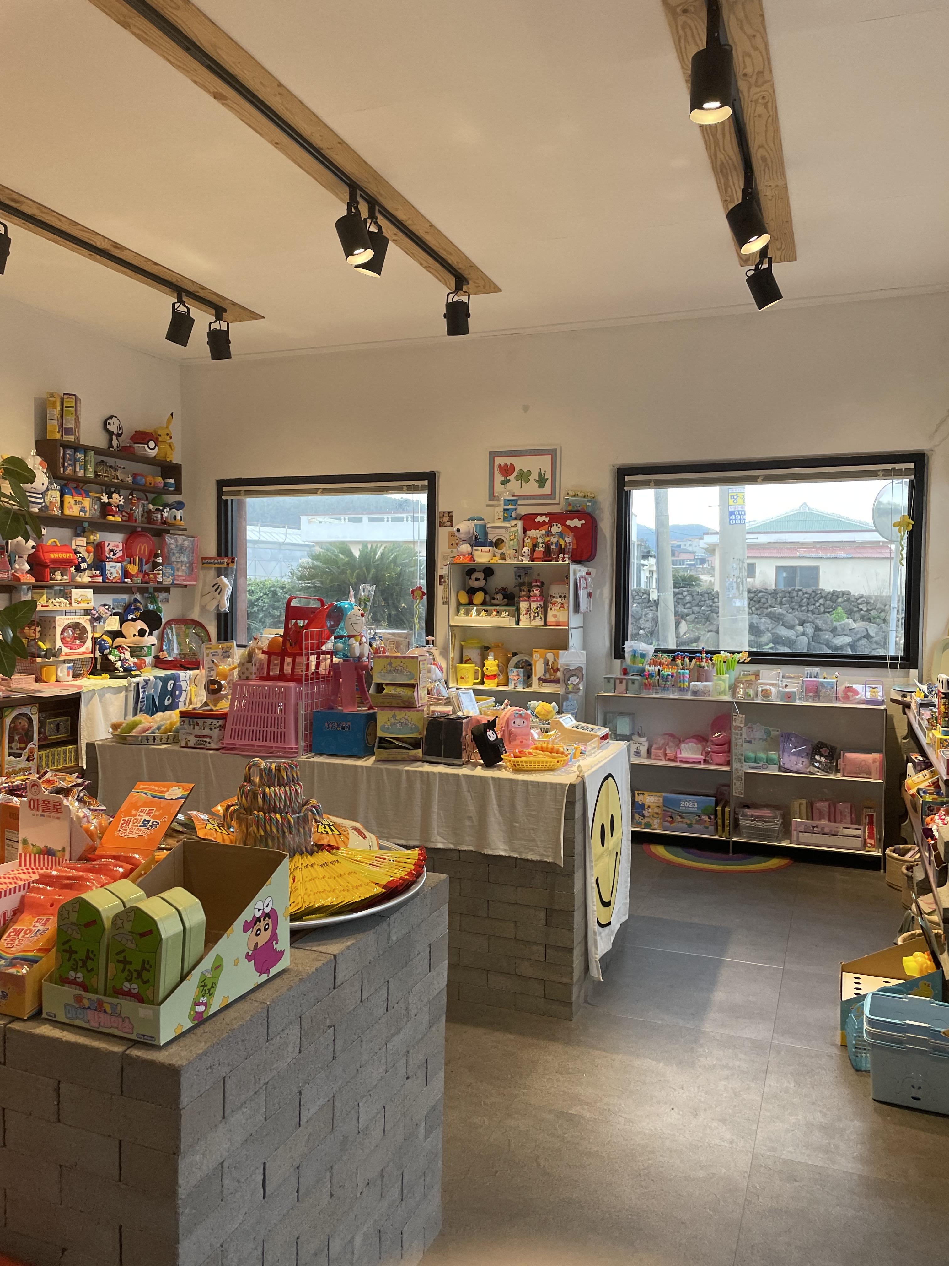 애월읍 도도리는 가게는 크지 않았지만 정말 구석구석 구경할 게 많았어요. 한 바퀴 돌아보고 또 볼 게 있어서 그렇게 몇 바퀴를 돌았는지 모르겠어요. 마지막으로 차에서 먹을 간식으로 브이콘을 집어 들고 즐거운 쇼핑을 마쳤습니다.