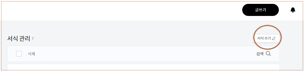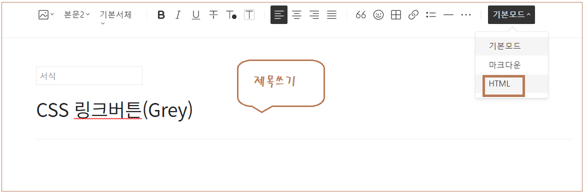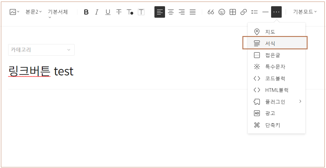 글쓰기→링크 버튼 넣고자 하는 위치에서 서식 불러오기