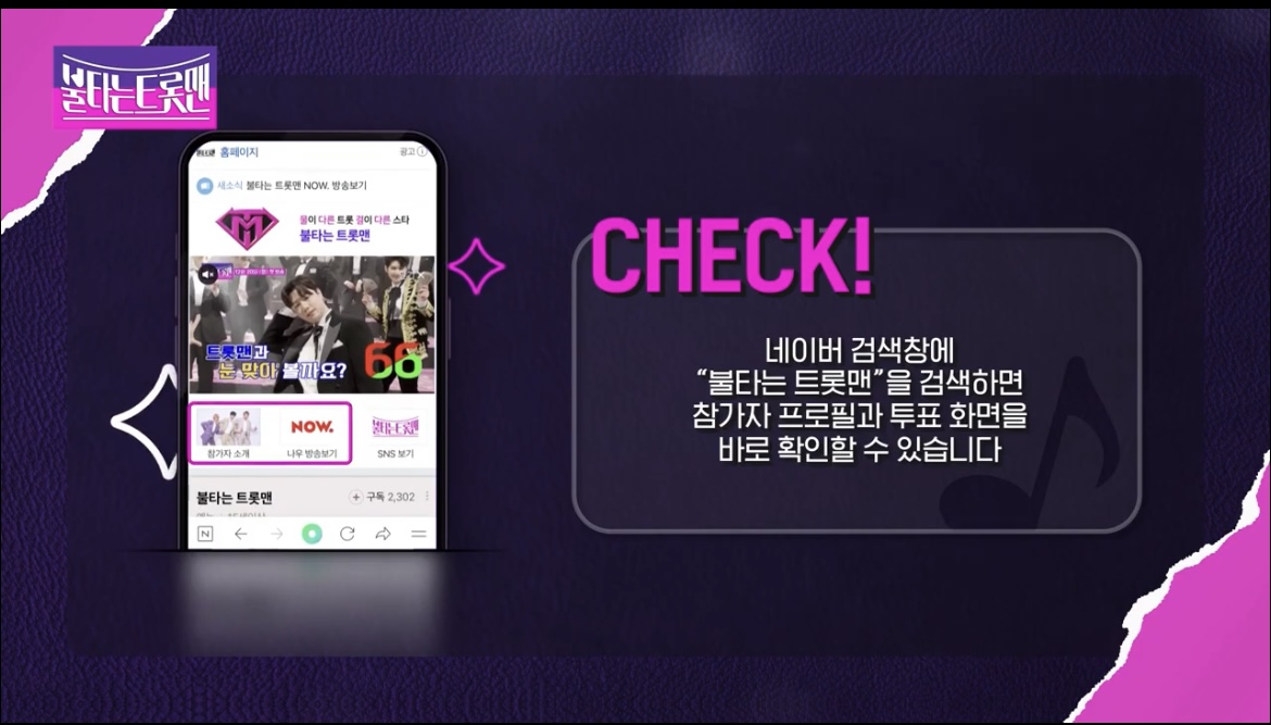 3. 불타는 트롯맨 투표방법(나우앱, 프로필 투표)