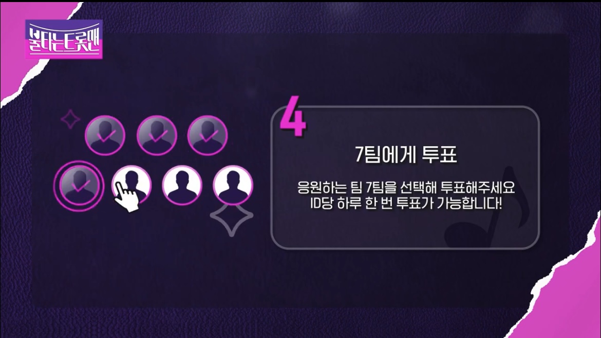 투표방법:참가자 7명 필수 선택 후 투표하기(아이디당 1일 1회 투표가능)