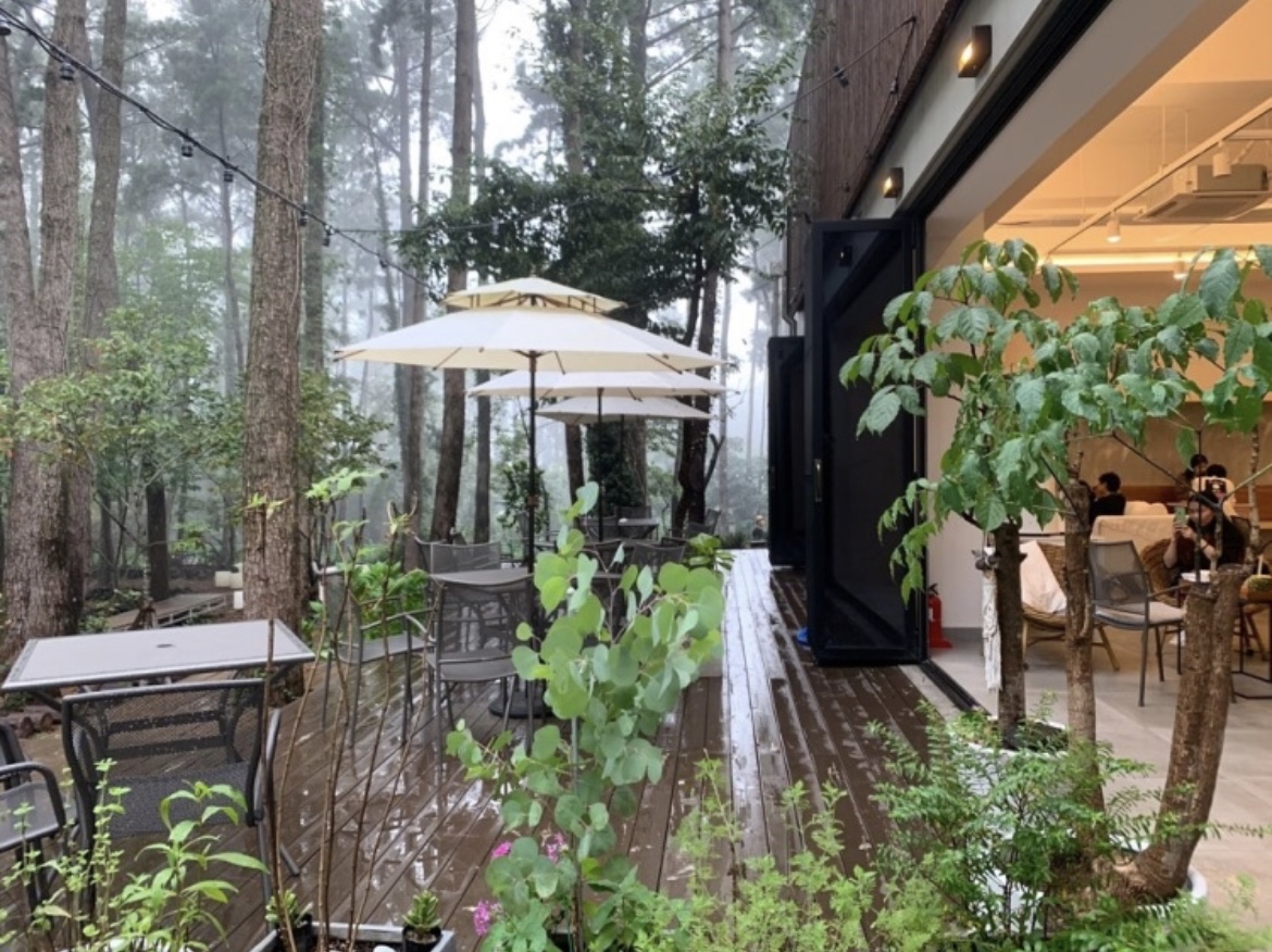 전체적인 느낌은 화려함보다는 편안한 분위기입니다. 야외테이블에서는 숲세권 전망으로 색다른 기분으로 즐길 수 있습니다.