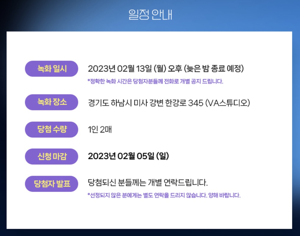 ▶미스터트롯 2 방청단 신청마감일 : 2023년 2월 5일(일)