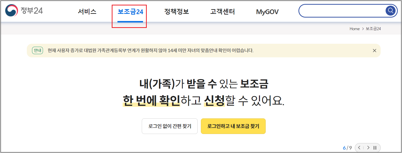 보조금 24로 들어가면 이런 화면이 보입니다.