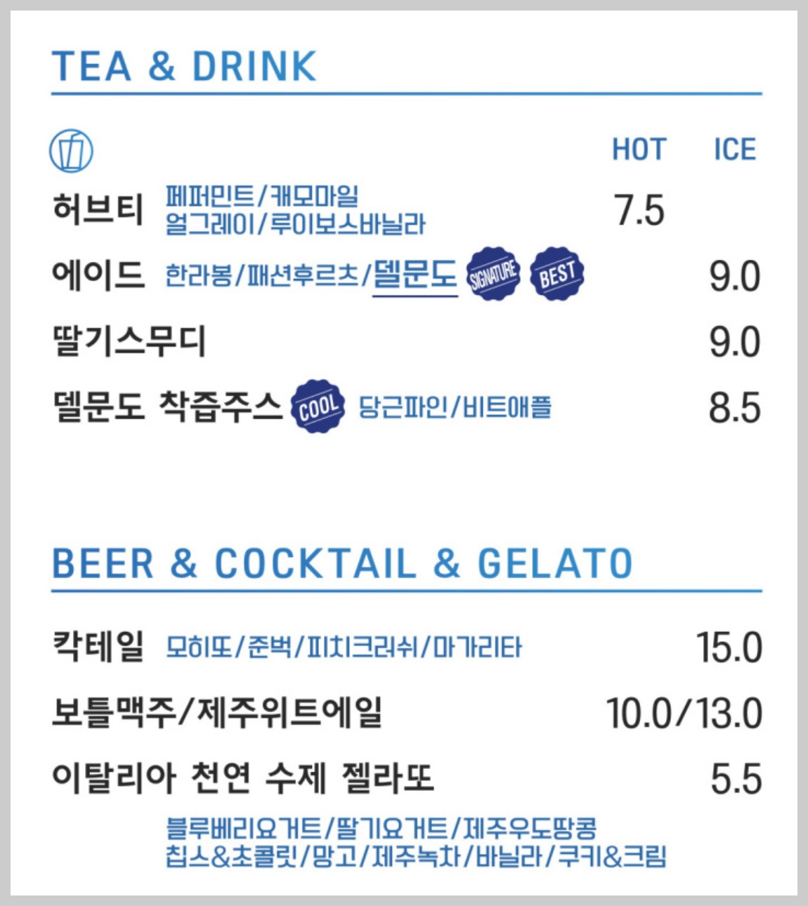 델문도 카페 메뉴