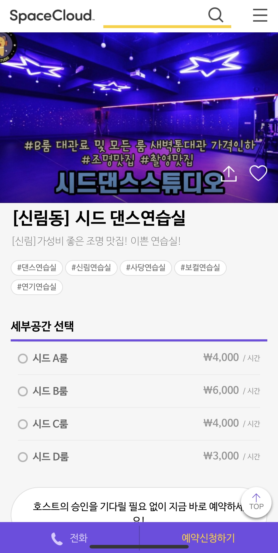 그래서 영상 찍을 만한 적당한 곳을 찾다가 시드 댄스 스튜디오를 알게 되었습니다.