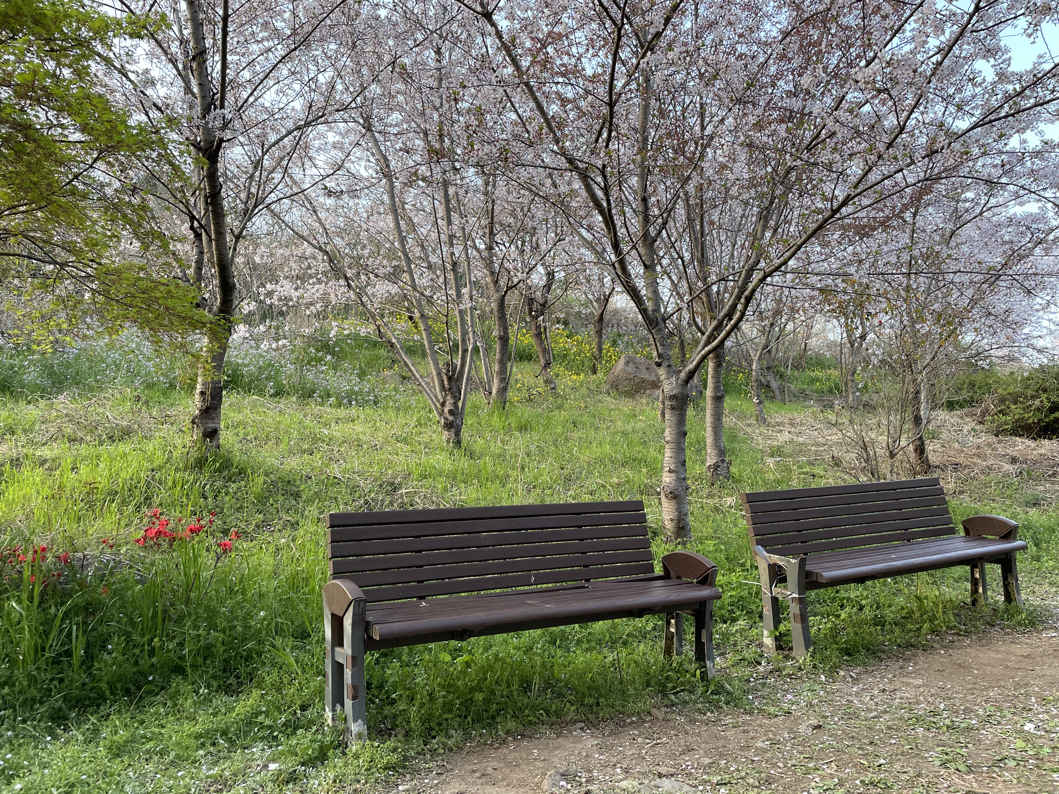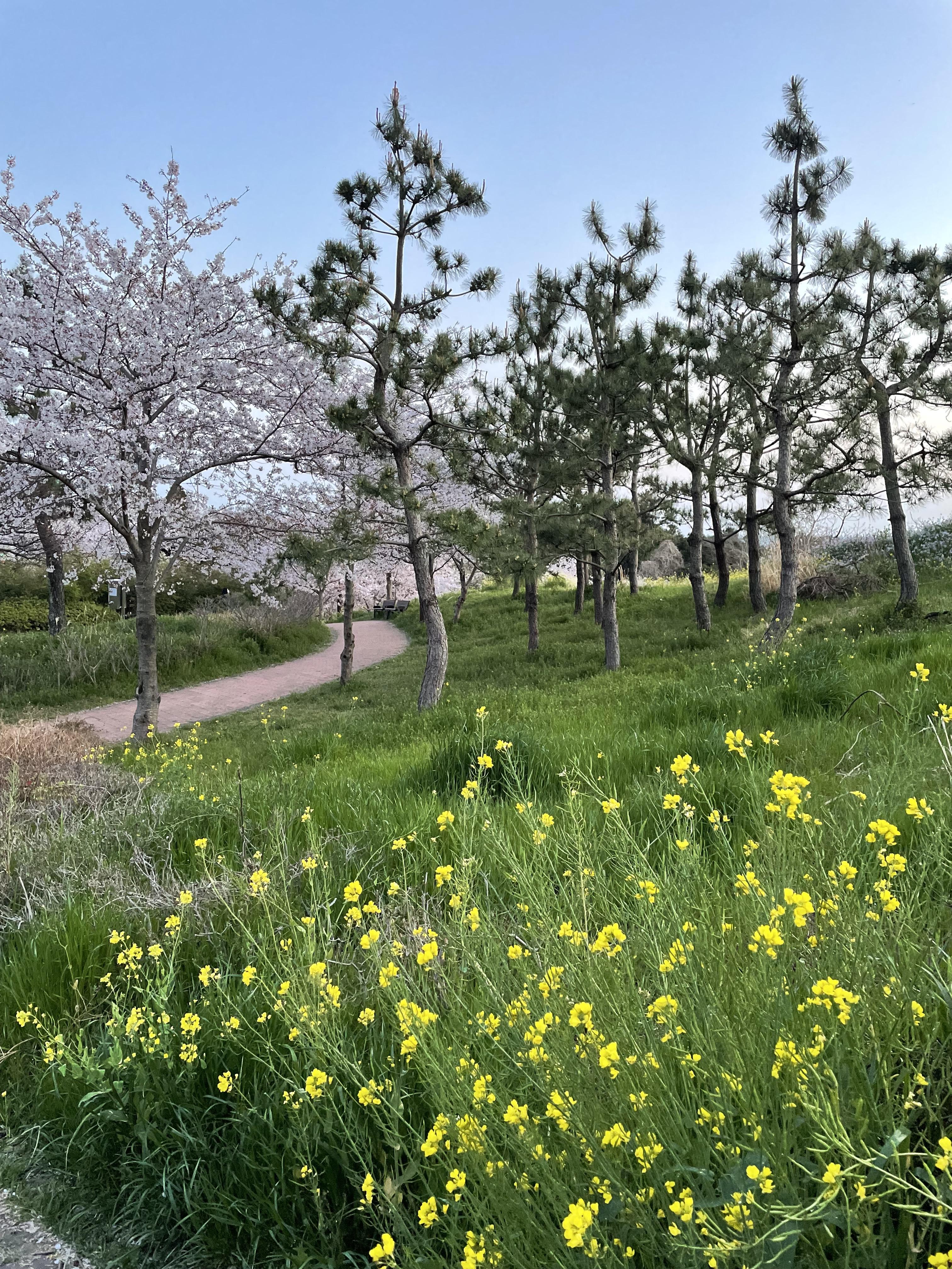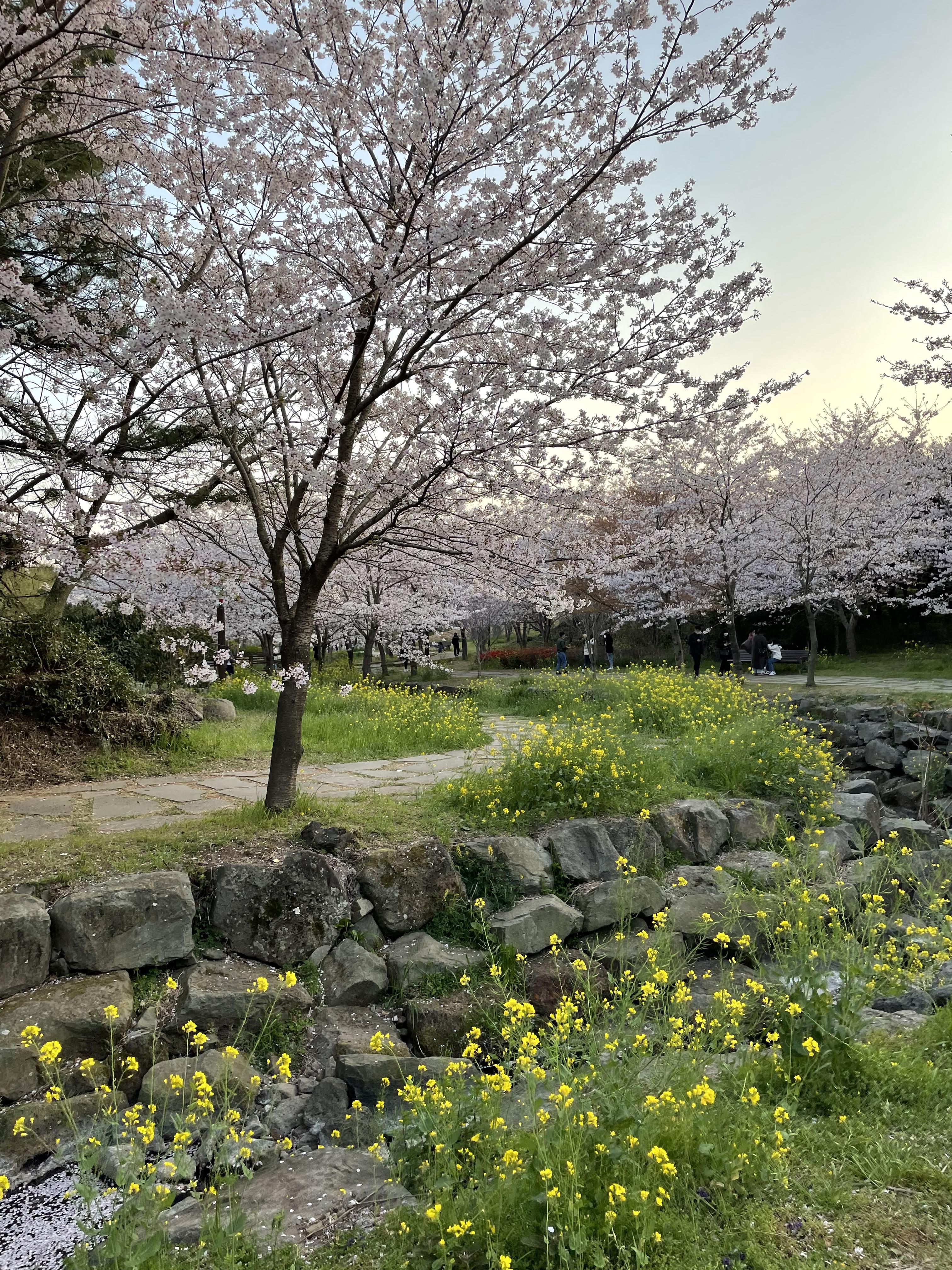 벚꽃 외에 다양한 꽃들이 여러 색을 내고 있고