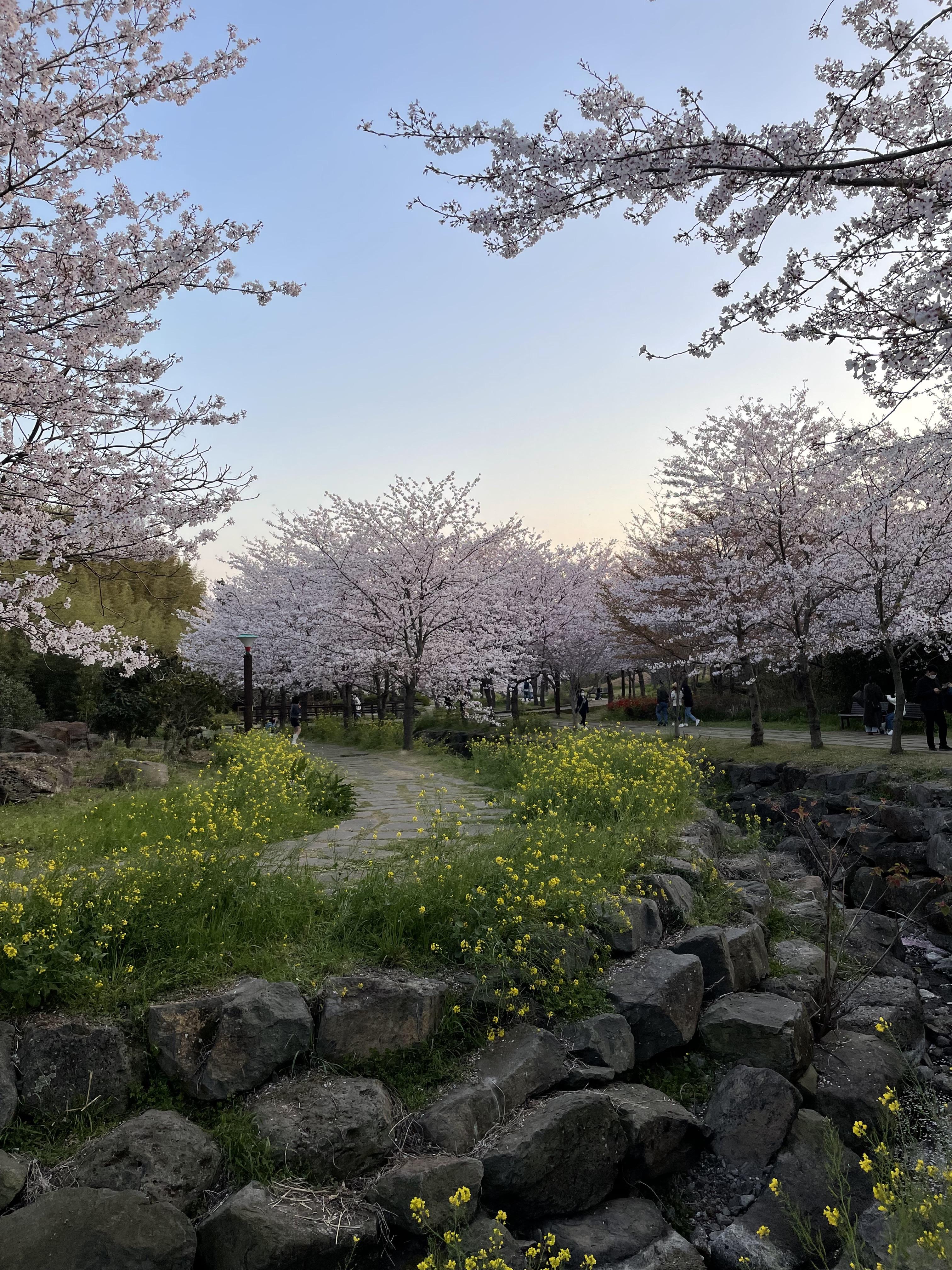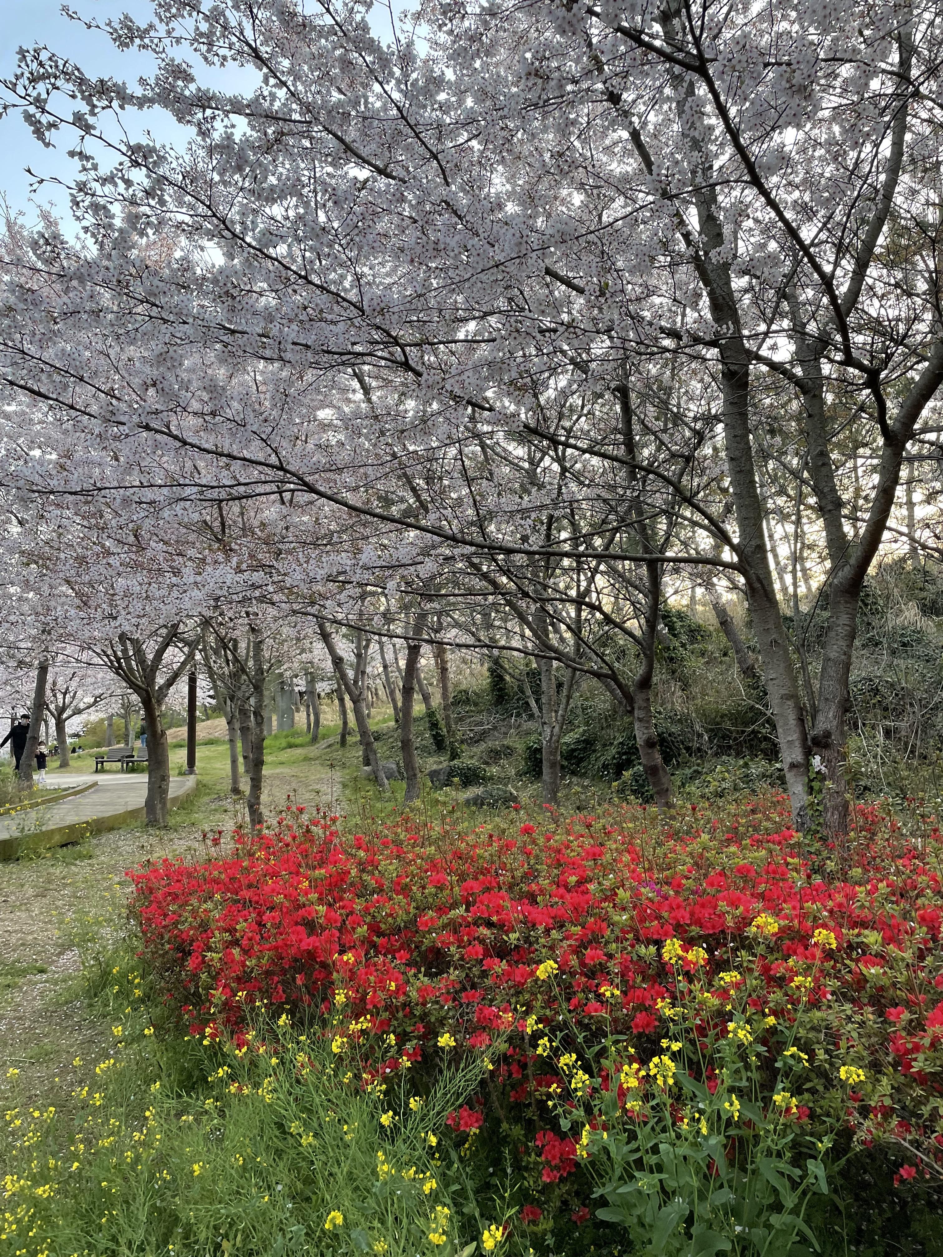 벚꽃 외에 다양한 꽃들이 여러 색을 내고 있고