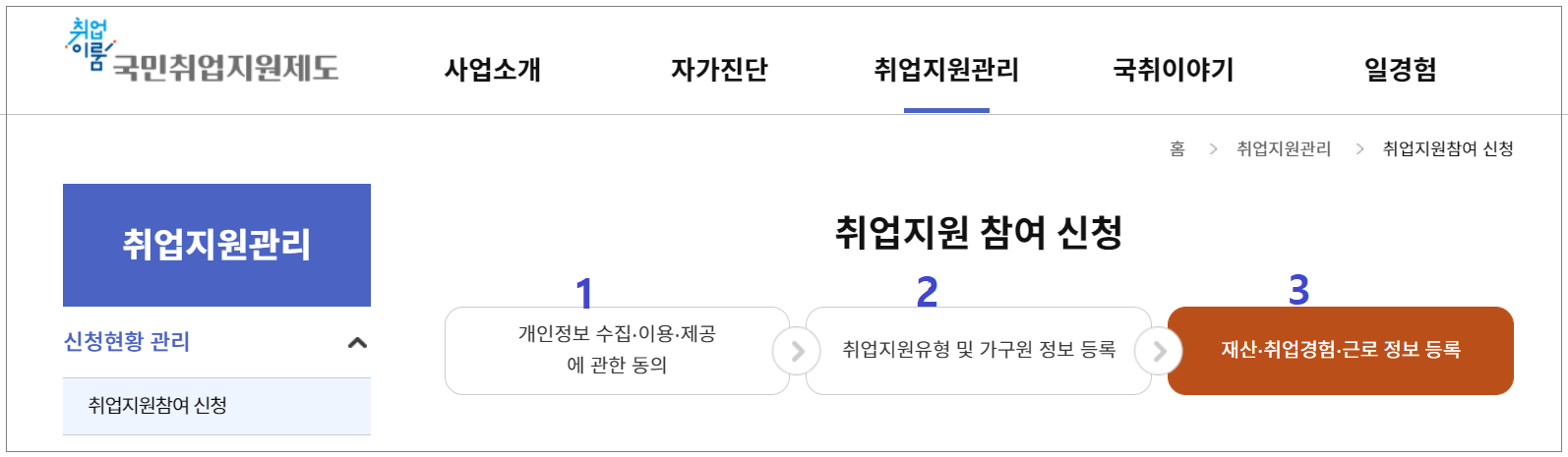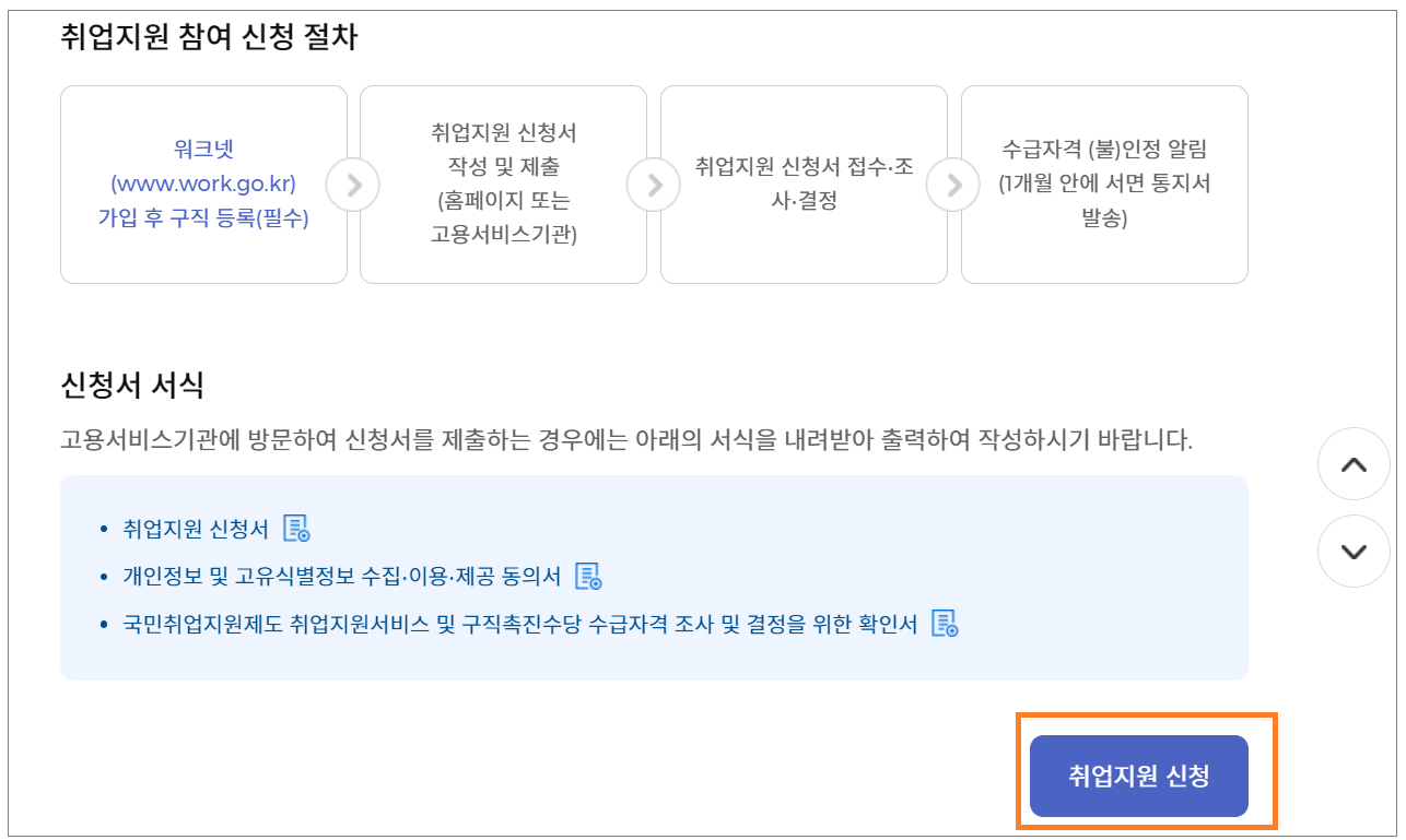 국민 취업지원제도 취업지원 신청에서
