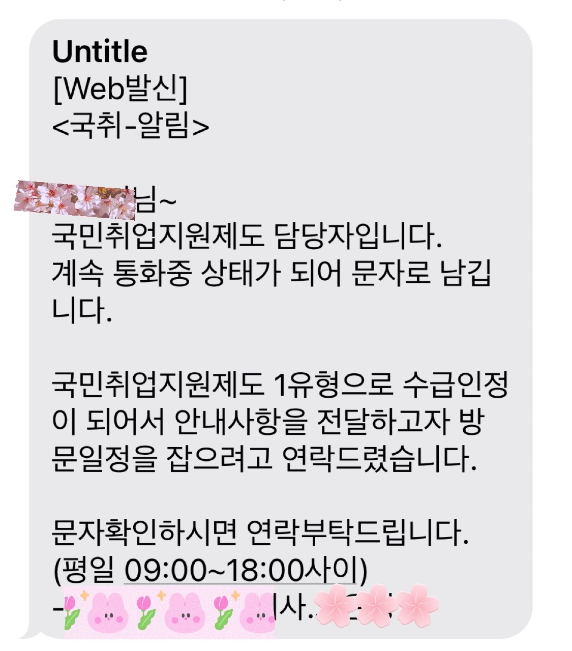 국민 취업지원 제도 수급 인정이 된 건 안심이 되었는데