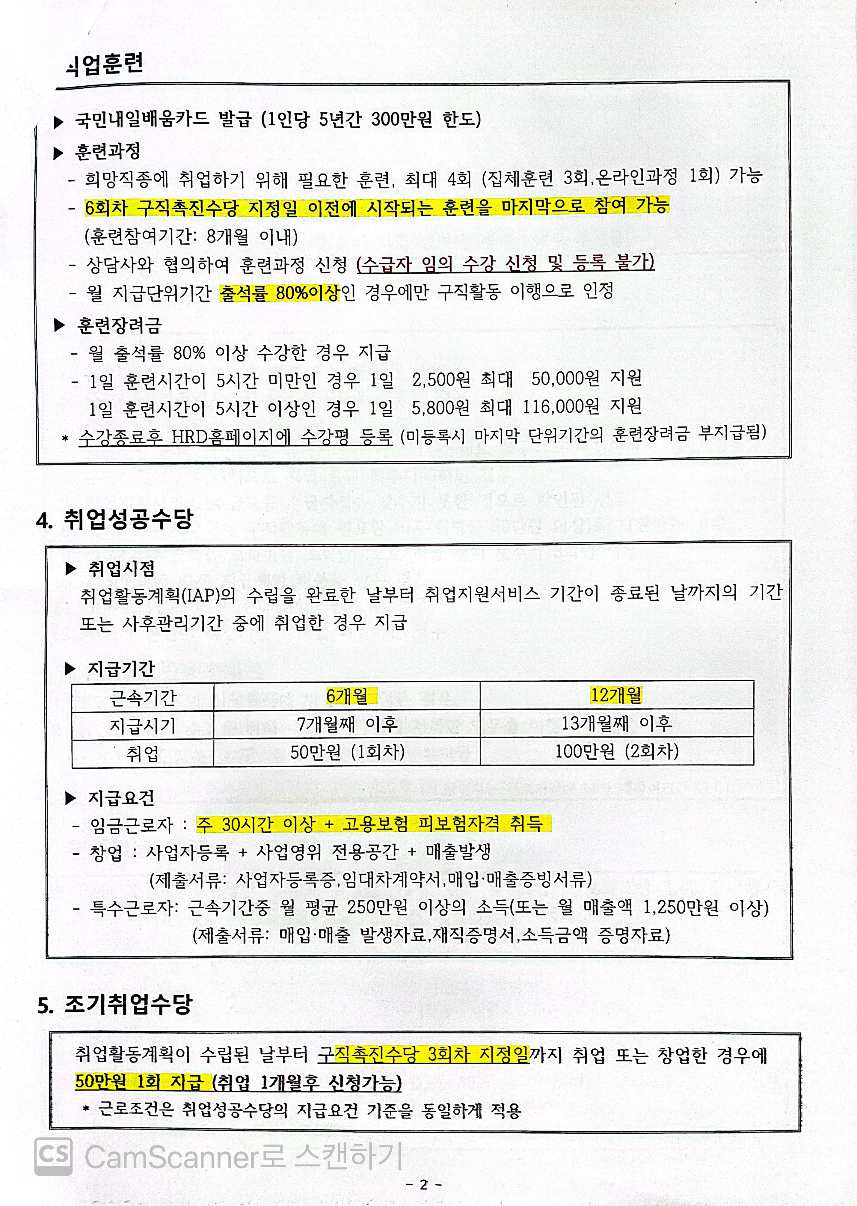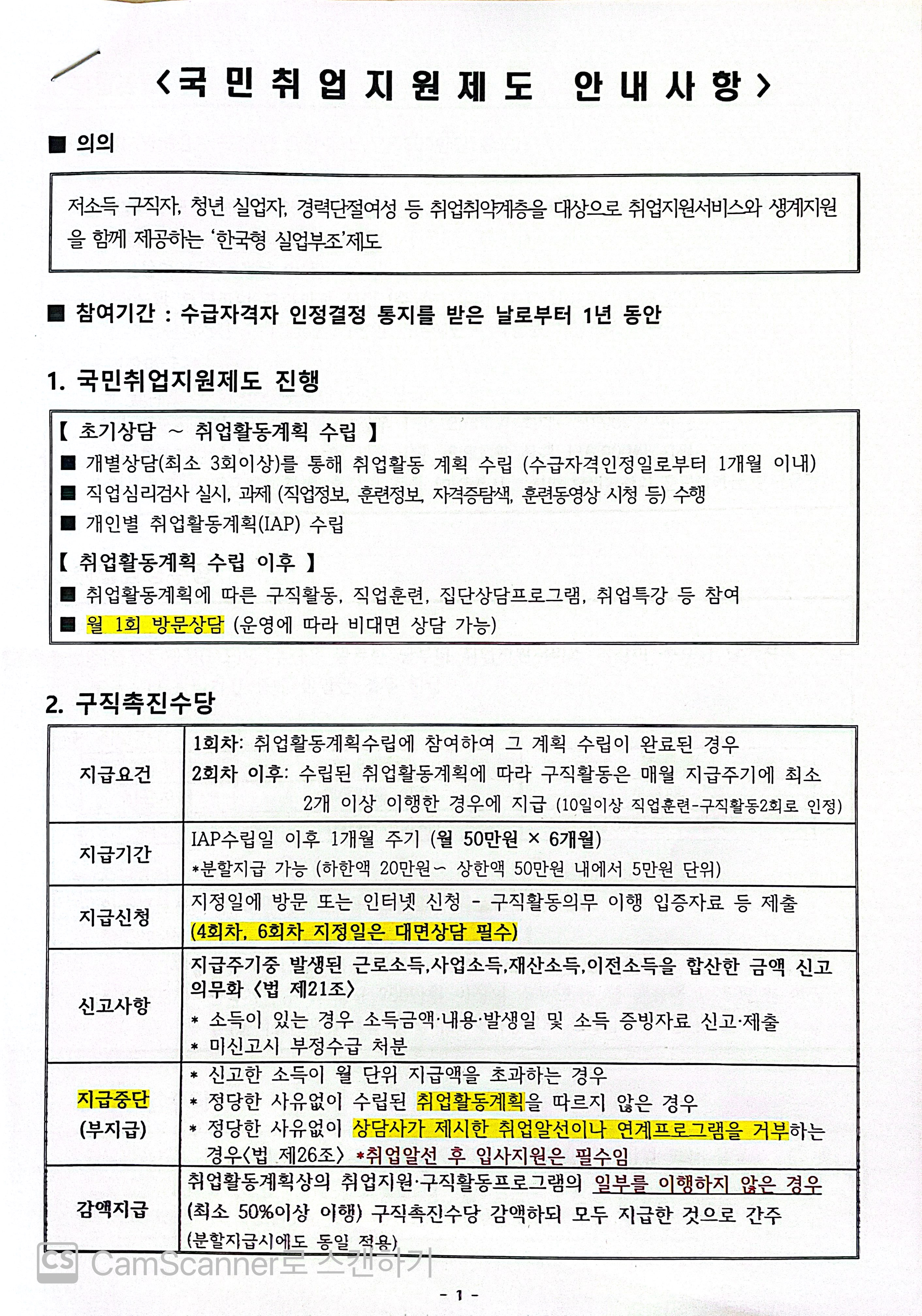 본인 확인이 끝나면 서류 한 뭉치와 국민취업지원제도 개인 수첩을 하나 주십니다.