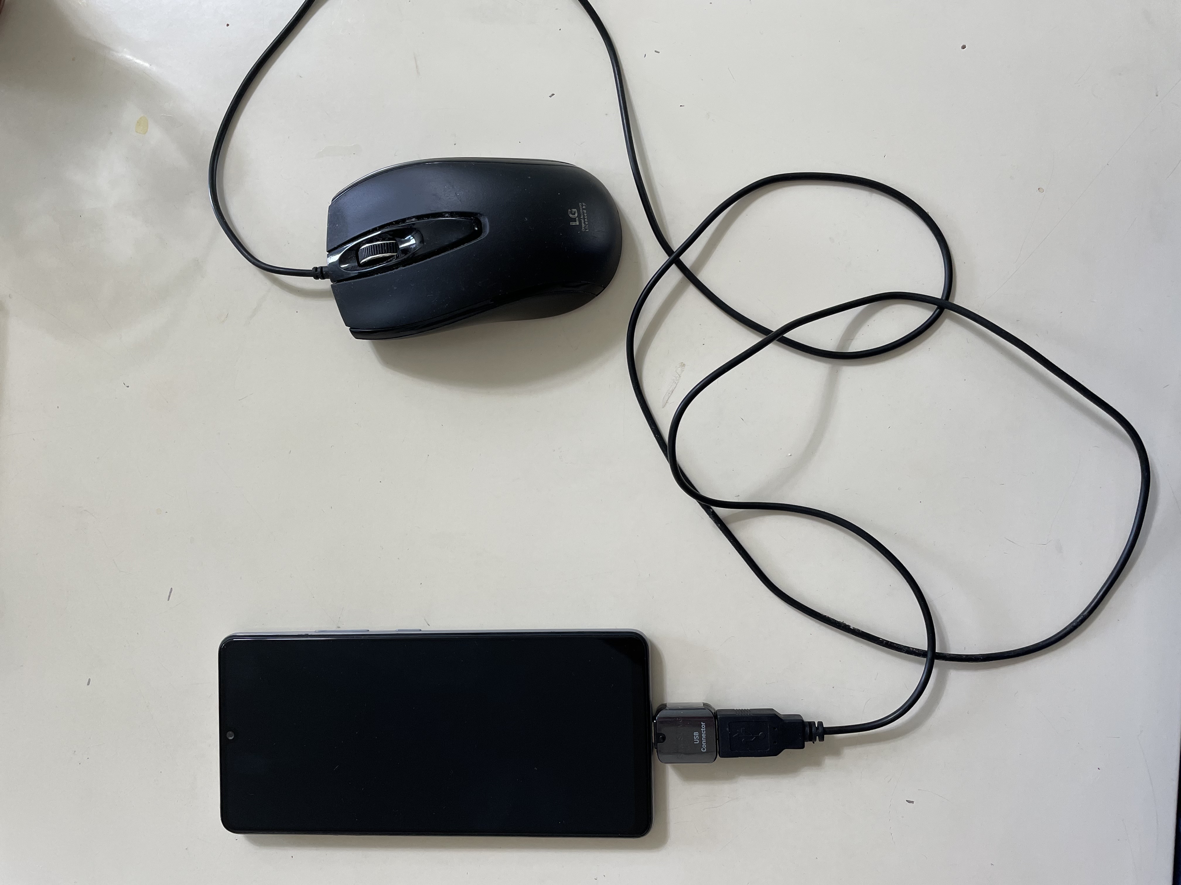 휴대폰에 USB 커넥트, 마우스를 연결합니다.