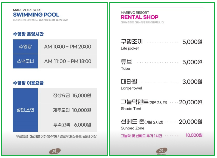 ★제주 애월 마레보리조트 수영장 후기(외부고객 이용 가능, 도민 할인)