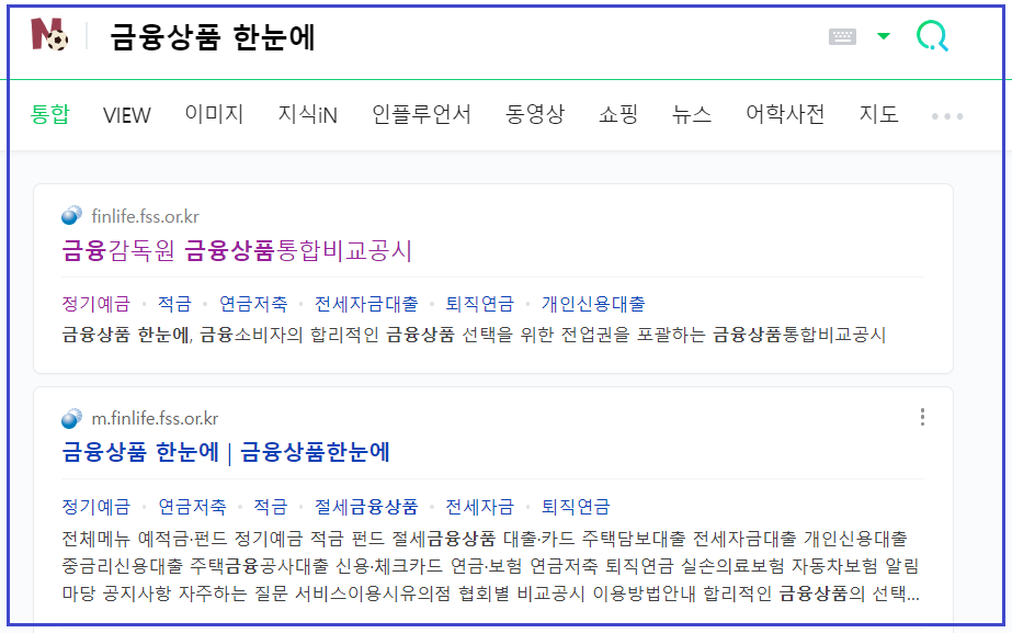 2. 금융감독원 통합상품 비교공시(금융상품 한눈에)