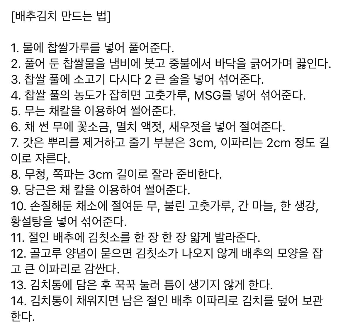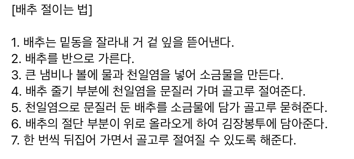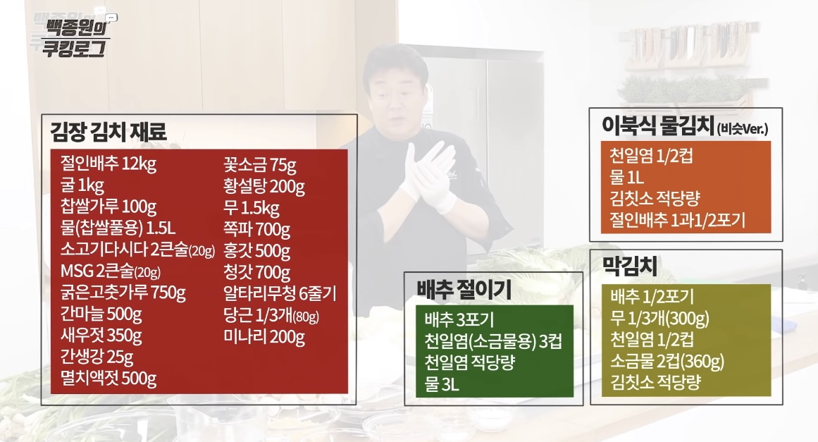 김장김치 레시피(백종원의 쿠킹 브이로그)