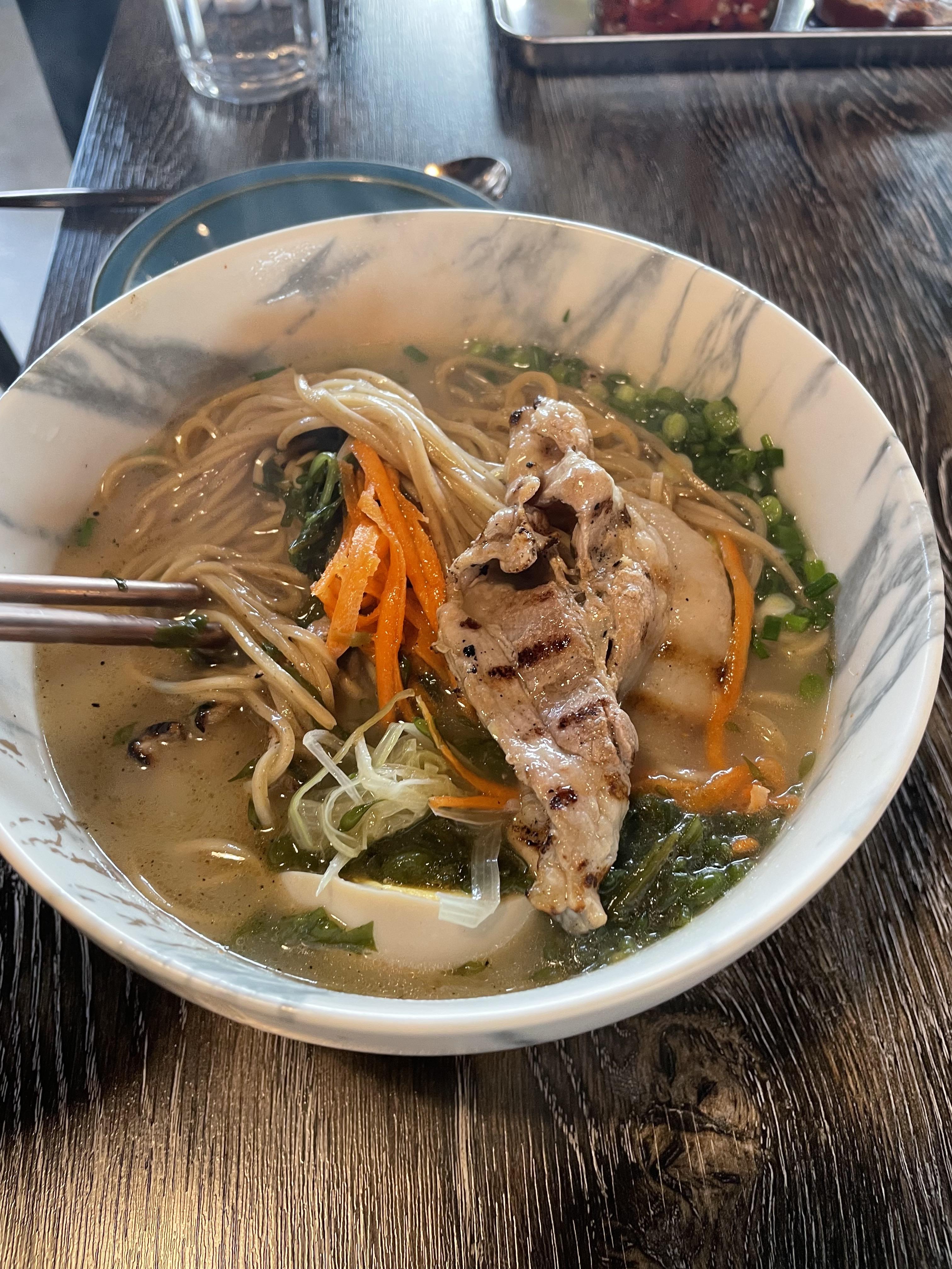 진한 국물의 고기국수 불향 나는 고기 맛이 최고입니다. 제주산 야채로 만들어진 부재료도 매우 신선합니다.