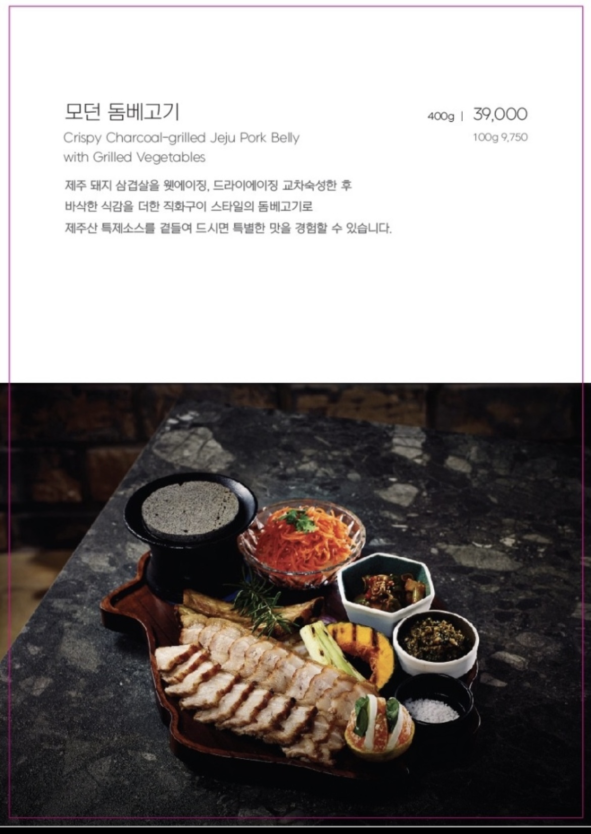 - 제주 모던 돔베 메뉴