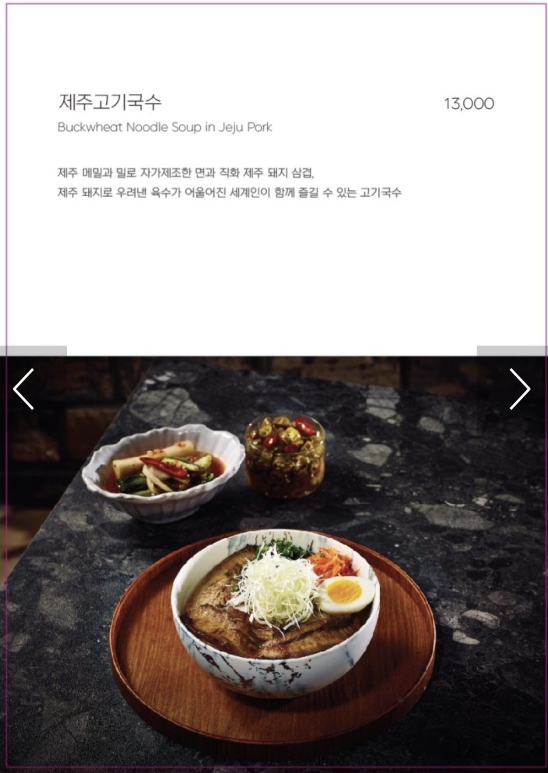제주 고기국수 13,000원(세트 20,000원)