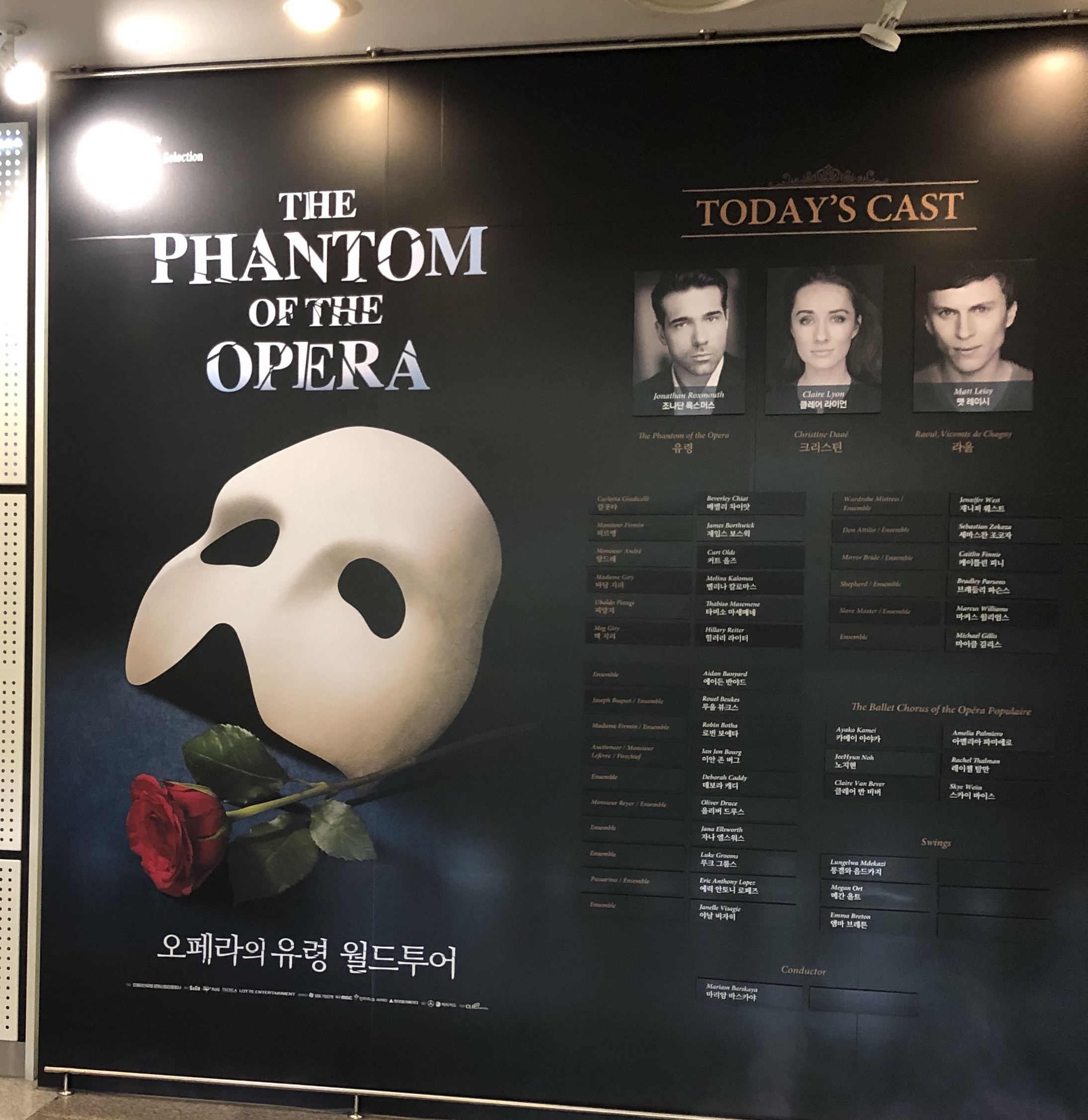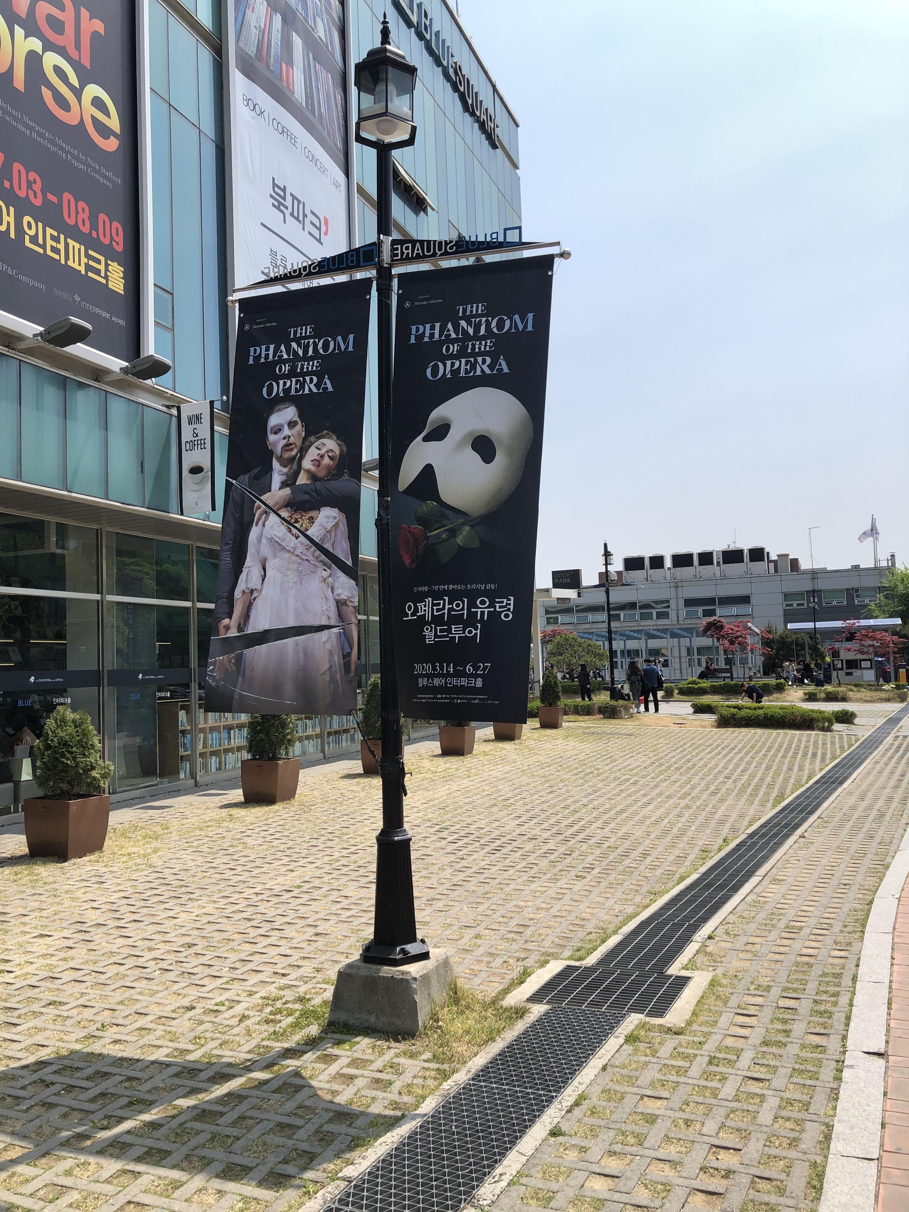 오페라의 유령 현수막을 발견하자 마음이 두근두근 하면서 발걸음이 빨라지기 시작합니다.